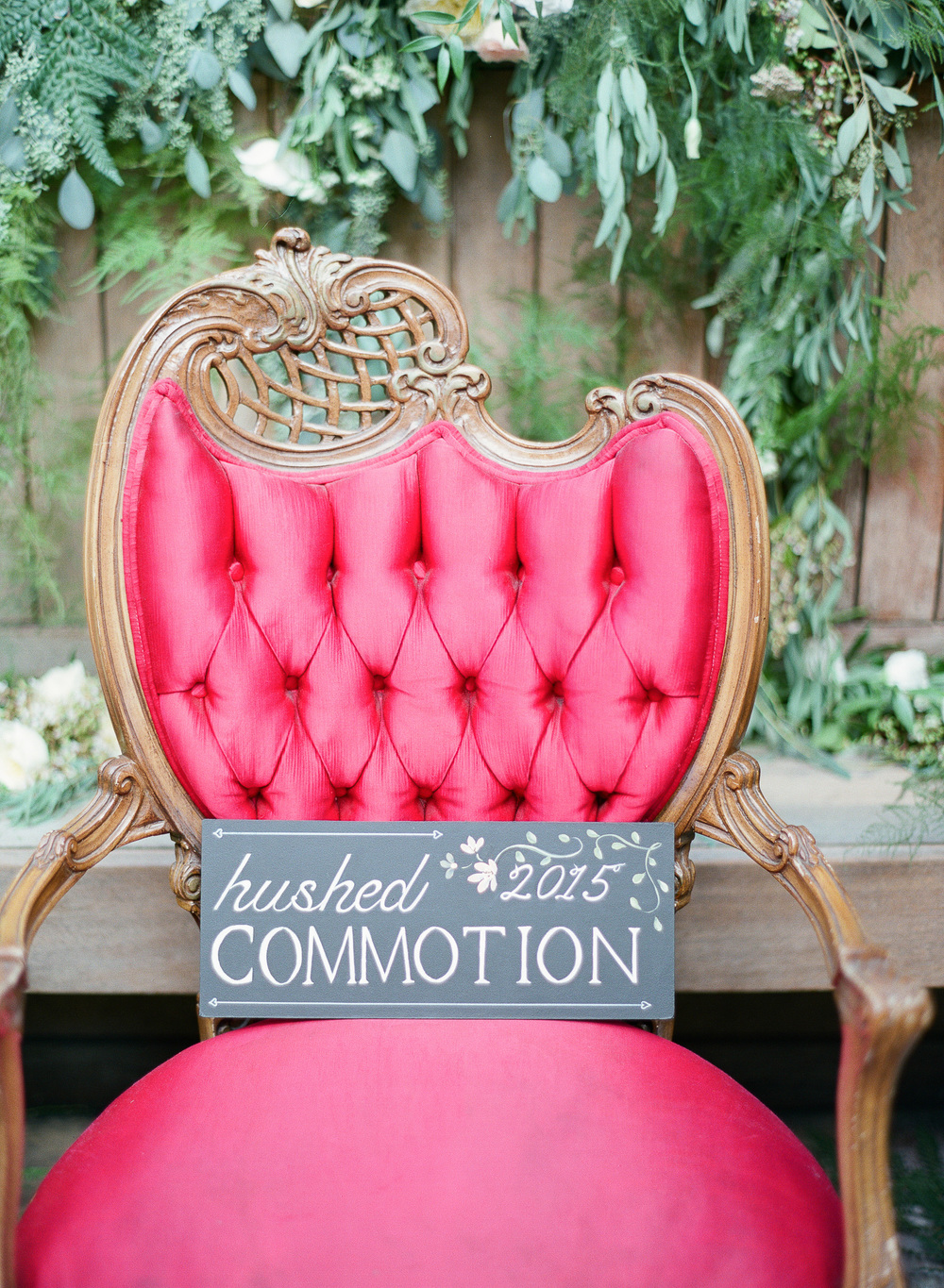 Photography: Brklyn View Photography / Location: Norwood Club / Floral Design: Lindsay Rae Design / Hair: StylesOnB / Makeup: Nicole Sievers / Chalkboard/Signage: Chalk It Up 2 Love / Gowns: Rebecca Schoneveld / Bridal Accessories: Hushed Commotion 2015 Collection / Model: Courtni Frey