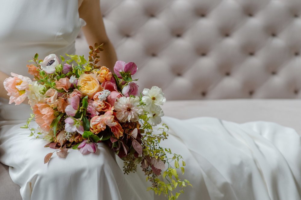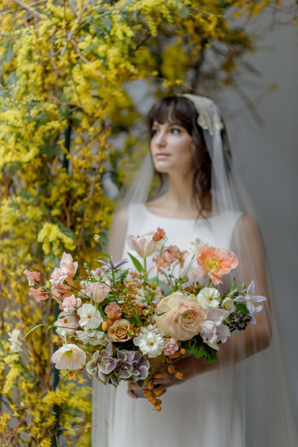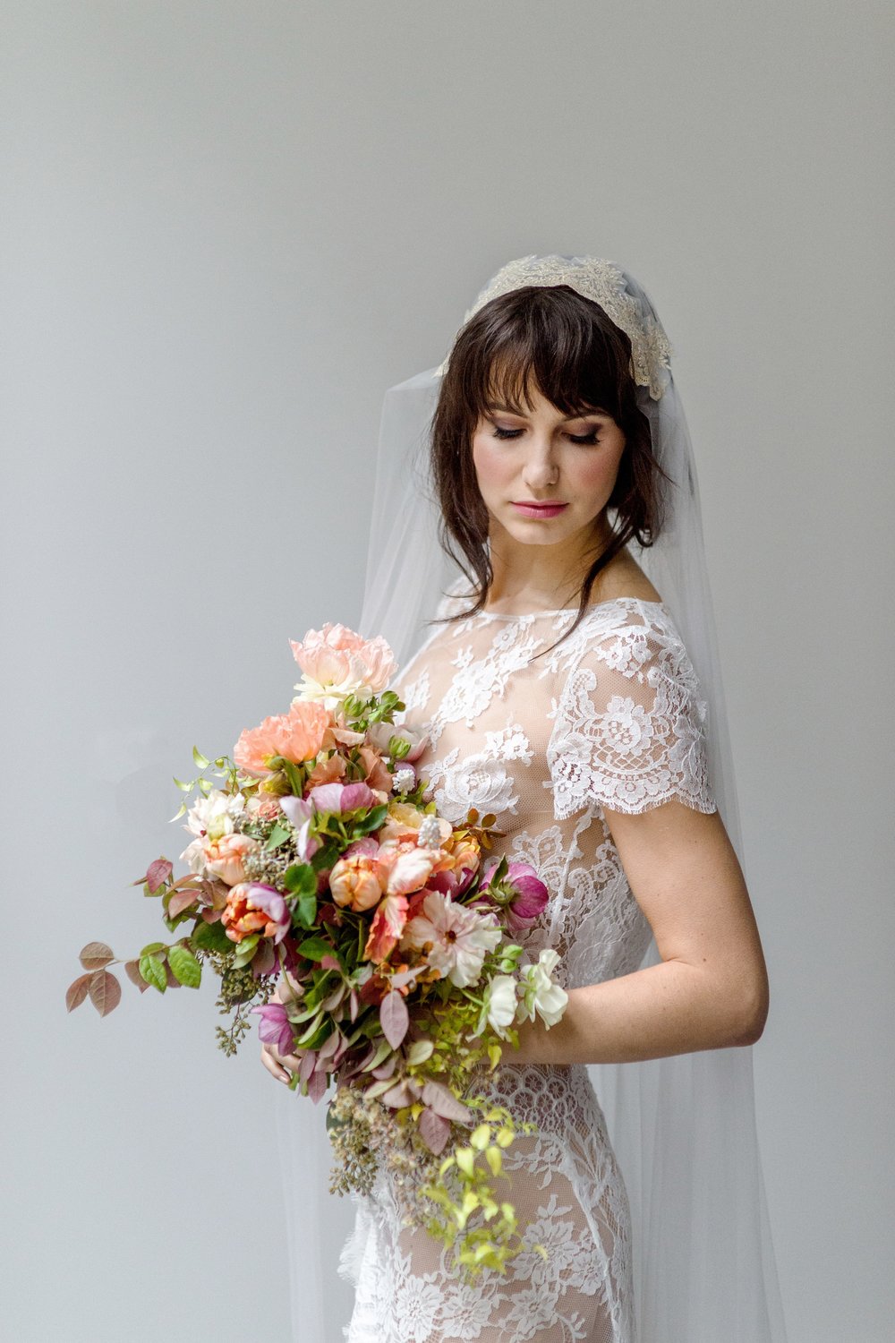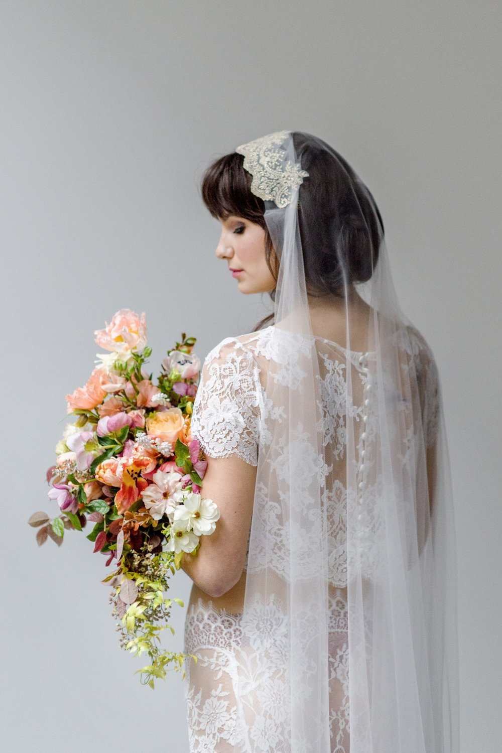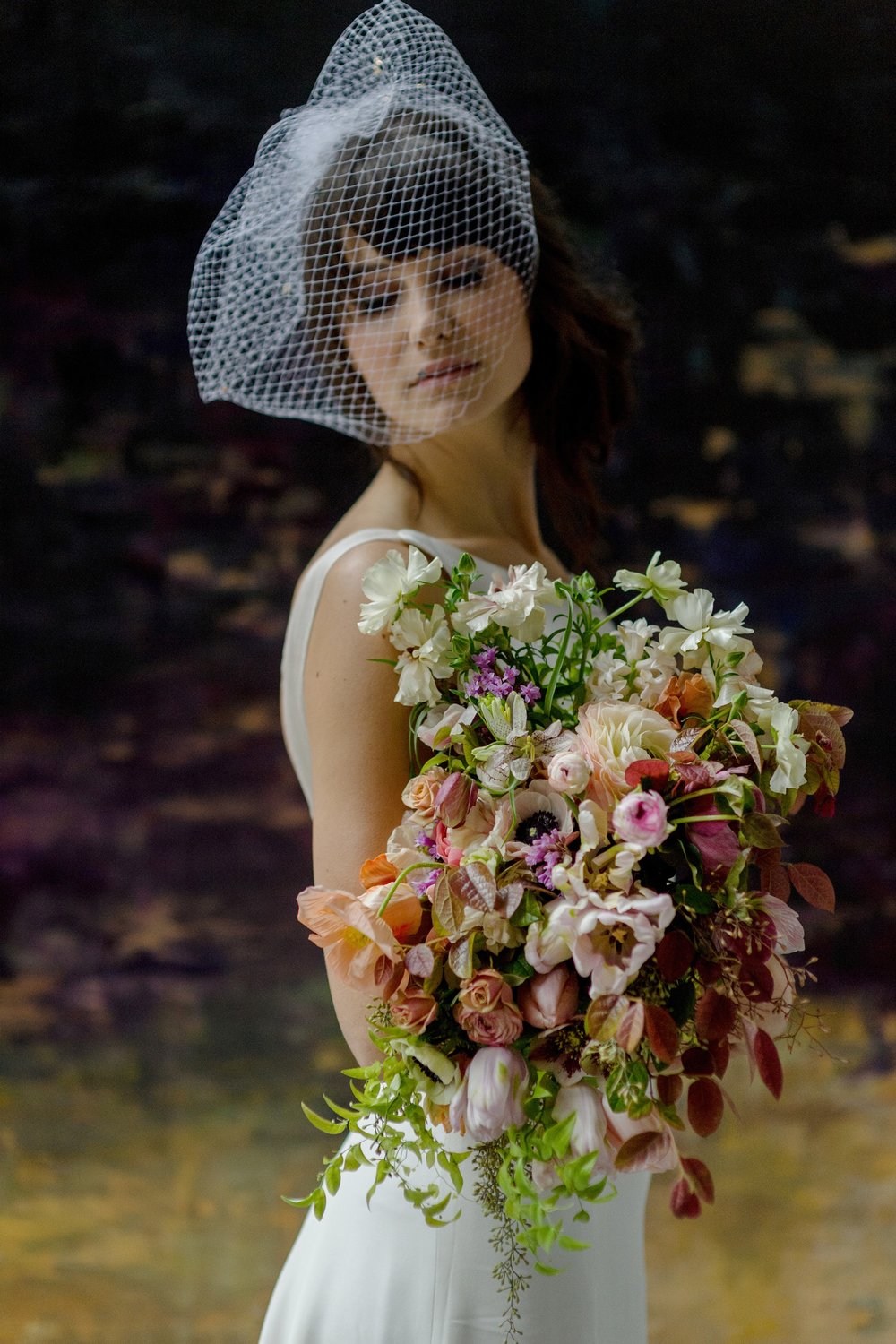 Floral Design and Styling: Tulipina Design / Student floral design: @foreverflower.emilysy / Photography: Cindy Loughridge / HMUA: Artists by Sherrie Long / Gowns: Floravere / Bridal boudoir: Girl and a Serious Dream / accessories and veils: Hushed Commotion / Model: @erica_lowry