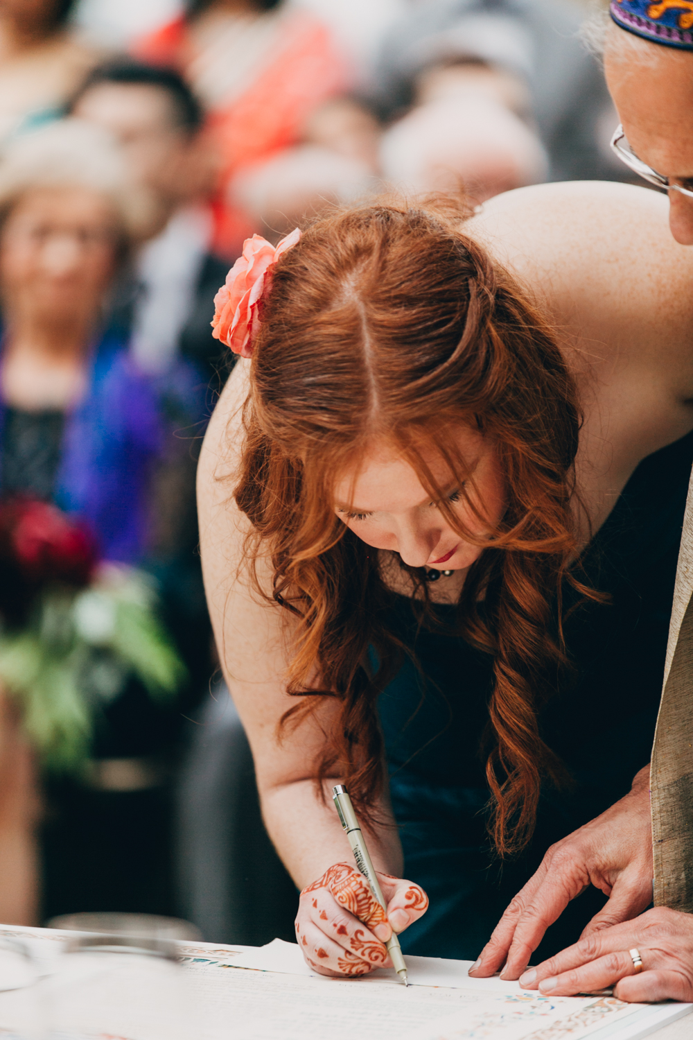 Our beyond incredible Ketubah (A Jewish marriage contract) that my godmother Galia Goodman (Of Galia Graphics) created! She does this for a living, and we were beyond excited and honored that she made ours for us. The craftsmanship, love and detail put into this piece is incredible. We worked hard with her to incorporate both tradtional Jewish elements as well as Hindu motifs. Thank you Galia!!