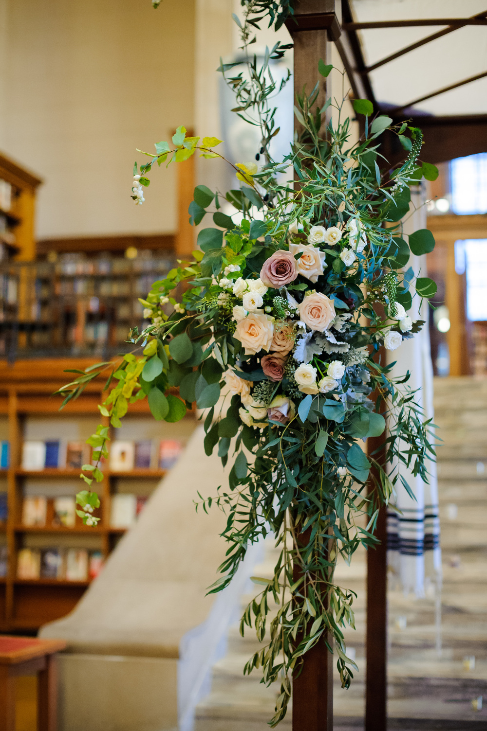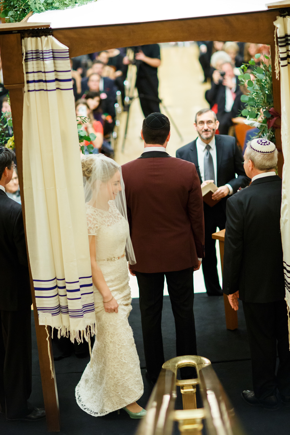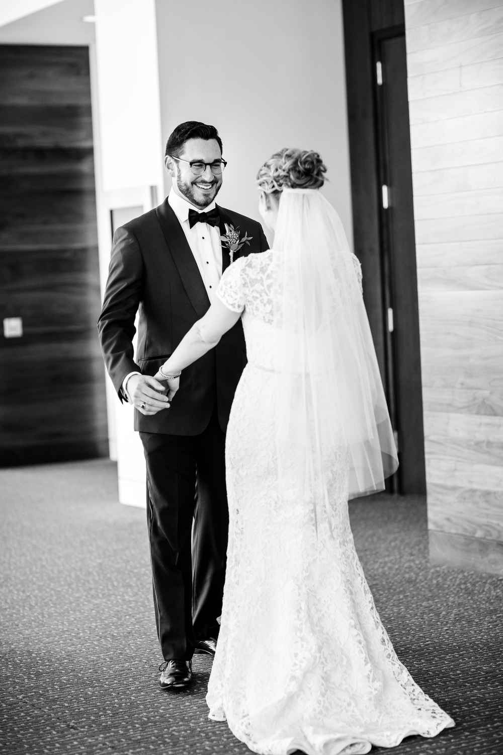 Photography • Bobby + Mike / Hair • Kathryn's Bridal Bar / Makeup • Beauty by Crystal / Florist • Isibeal Studio / Ceremony & Reception Venue • Indianapolis Central Library / Band • The Sly Band / Dress • Gabriella New York Bridal Salon – Amy Kuschel , Custom belt by Hushed Commotion / Bridesmaid dresses • BHLDN / Tuxedo• Alton Lane / Shoes • Shoes of Prey designed by the Bride