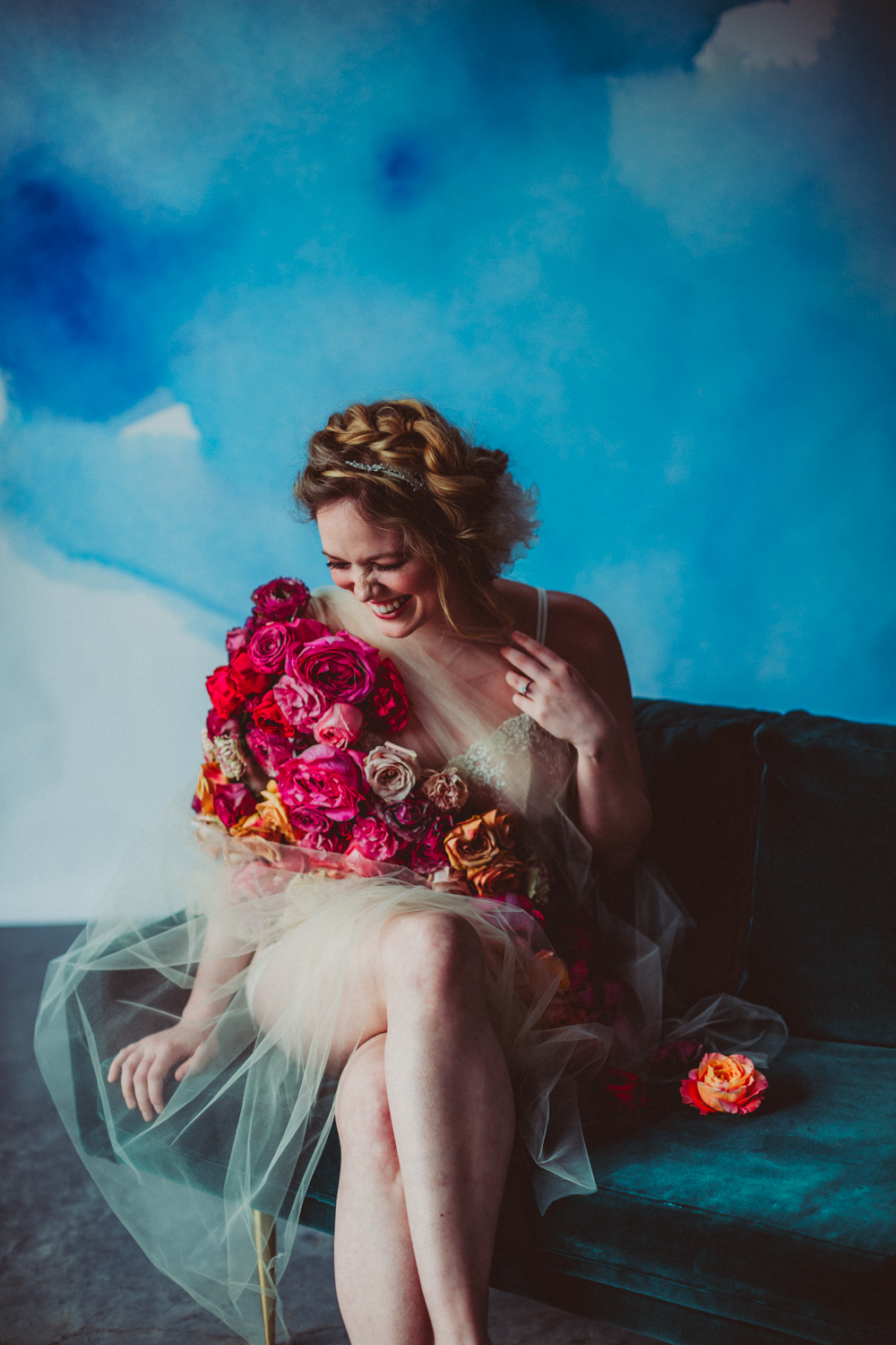 Photography: Amber Gress / Design, Styling & Floral: Starling on Bond  / Hair: Sara June / Make-up: Shari Cohen / Veils & Accessories: Thea Bloch-Neal / Lingerie: Iris Lingerie / Dyed Robes: Cara Piazza / Venue: The Sky Gallery / Models in order of appearance: Grace Courvoisier, Tara Nicolas, Hannah Wolff