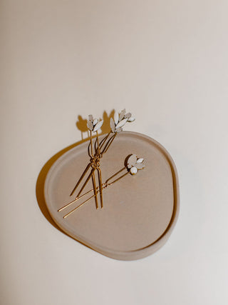 - This set of 3 asymmetric raw crystal and alabaster hair pins will be the perfect finishing touch for your hairstyle!