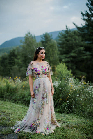 We took some of our favorite ivory beading and paired it with a metallic leather sash to create Mirabella! Sassy and cool - Mirabella is the statement touch any minimalist dress needs.